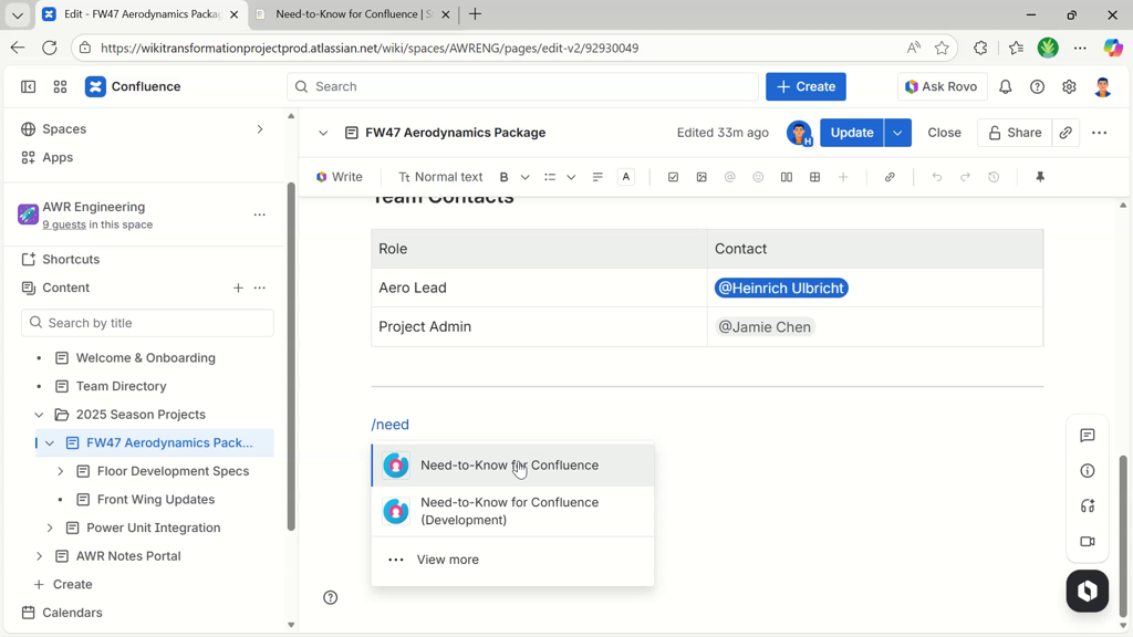 This 15-minute video demonstrates the Need-to-Know for Confluence app and macro in action.