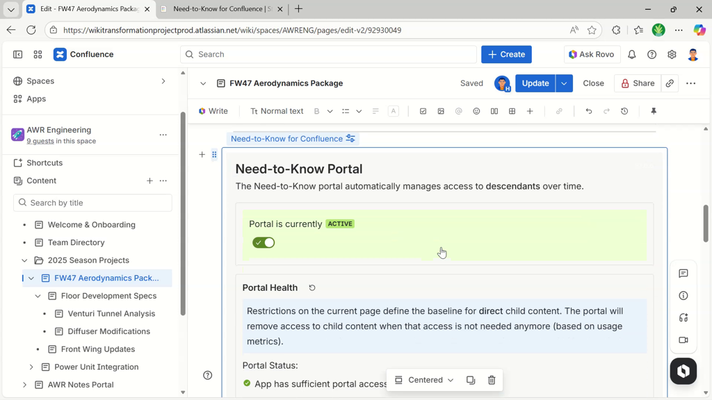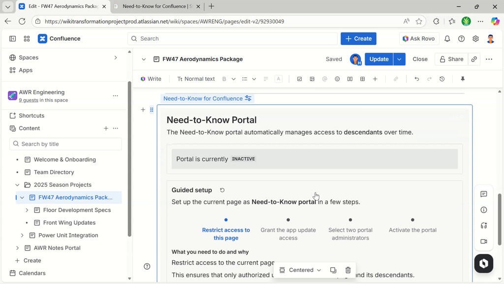 Open a wiki page in Confluence Cloud and add the Need-to-Know macro to it, making this page a Need-to-Know Portal.