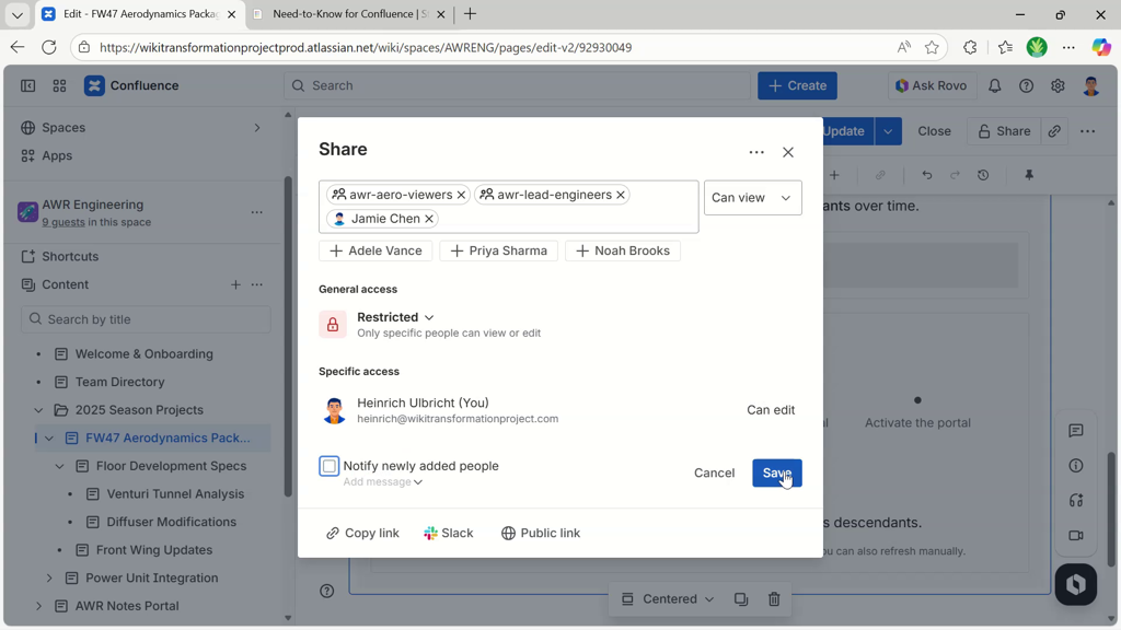- Ensuring that access to Confluence content is limited to those who still need it.